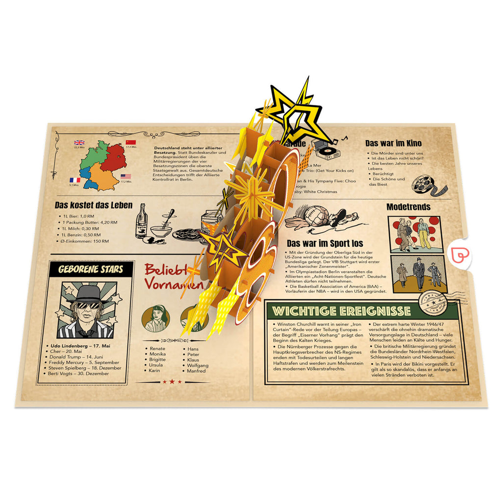Zurück ins Jahr 1946 Pop-Up Karte